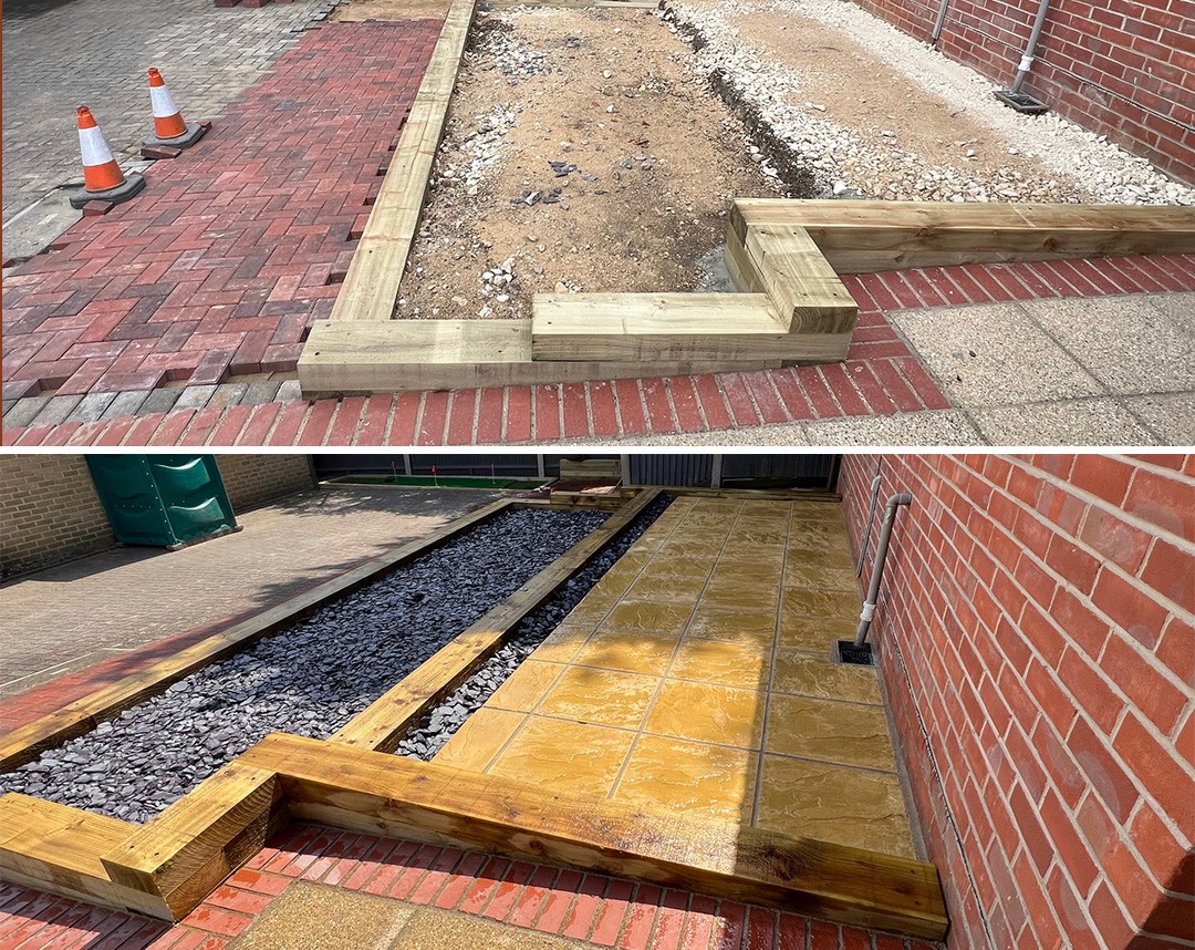 This project involved preparing and installing a new patio area, replacing an uneven surface with a stable, well-defined layout. Groundworks included excavation, sub-base installation, and timber edging, followed by precise paving for a durable, level finish.