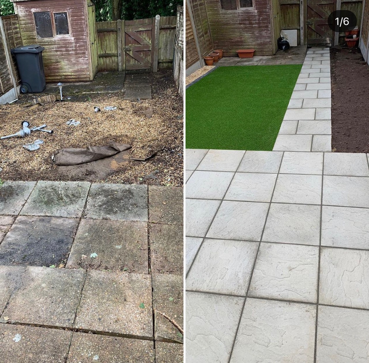 This project focused on clearing and transforming an outdoor space, removing debris, old materials, and uneven ground to prepare for a clean, functional finish. Our team carried out full site preparation, ensuring a solid base before installing new paving and artificial grass for improved usability and appearance.